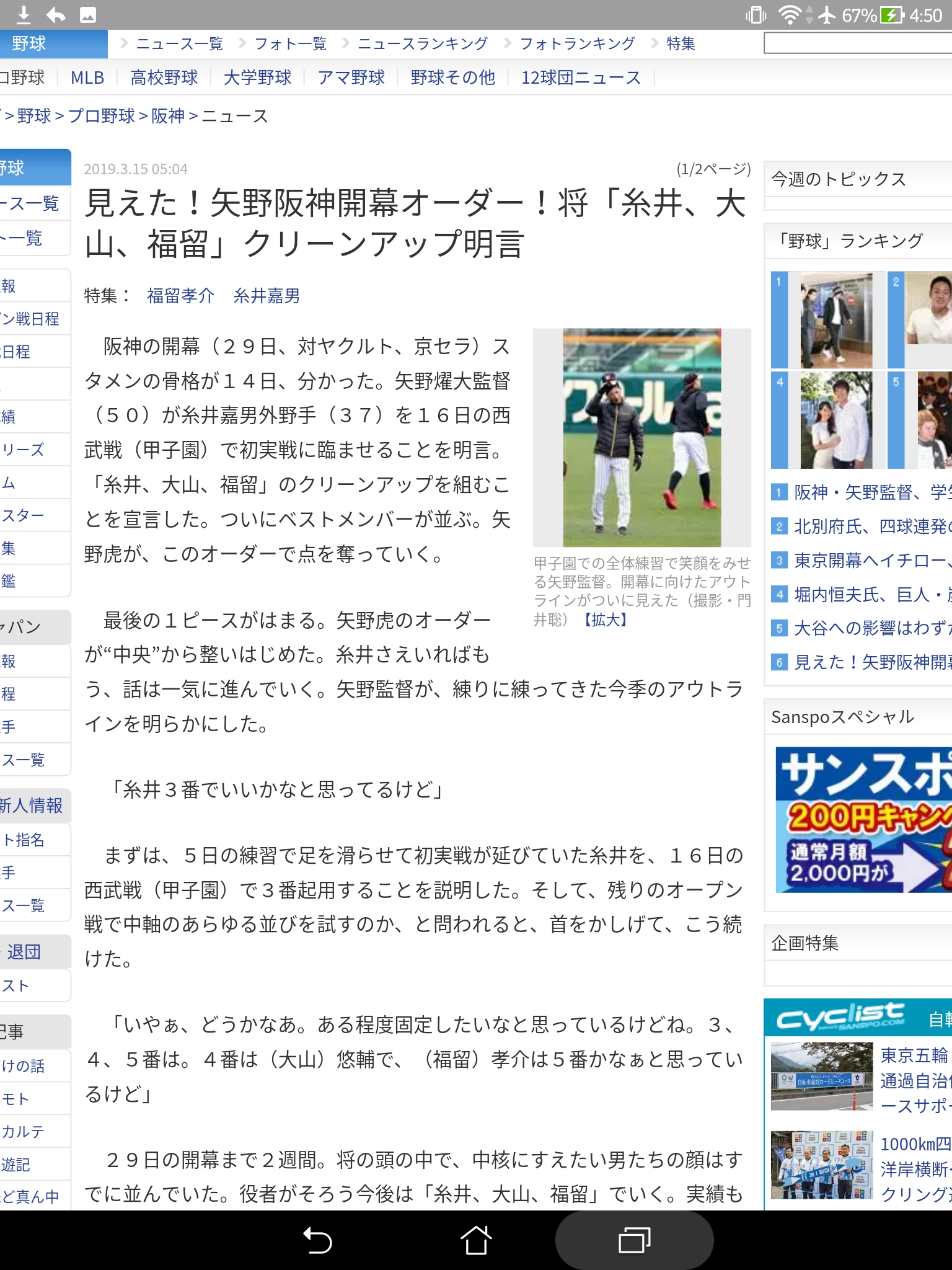 どうせ大山が20本ぐらいHR打たなきゃどうしようもないんだからこれでいいよ