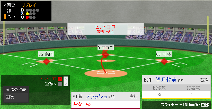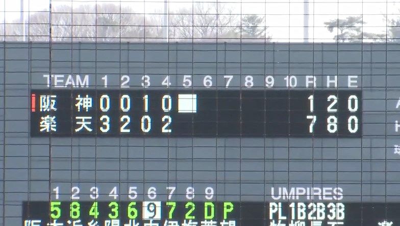 【楽天対阪神オープン戦】楽天ブラッシュ、4回裏に2点タイムリー!今日3安打4打点の活躍!阪神望月は4回までに7失点の炎上・・・