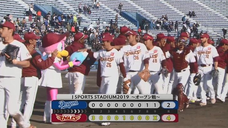 楽天は17日、静岡・草薙球場で中日とのオープン戦を戦い、4-2と勝利した。初回に島内、銀次の適時打などで3点を先制すると、先発の藤平が5回を5安打無失点に抑える好投。リリーフ陣もリードを守り抜き、最後は新助っ人のブセニッツが締めた。