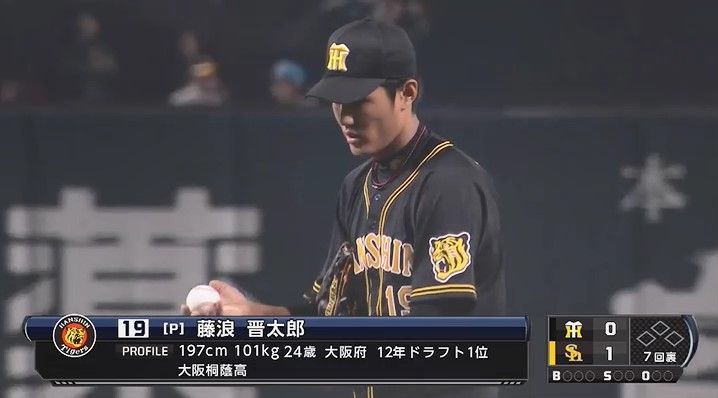 1:投手交代:ジョンソン→藤浪 守備変更:江越→レフト