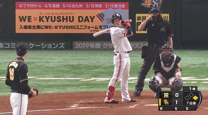 4:塚田→代打:釜元5:一塁走者栗原:盗塁を試みるもアウト 1アウト