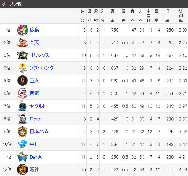 中日ドラゴンズ、地味にオープン戦防御率リーグ1位