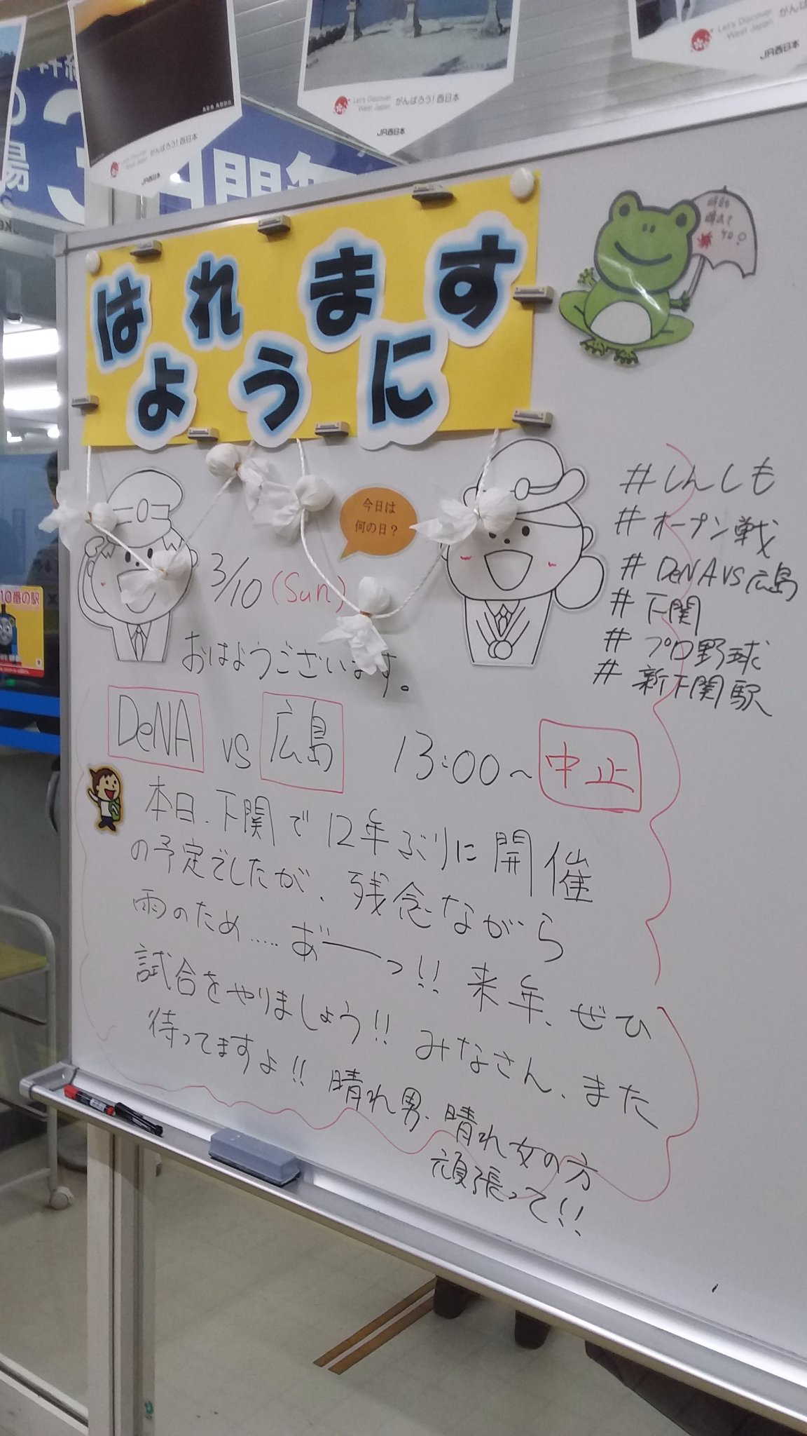 てるてる坊主も飾られたJR新下関駅の掲示板も、雨天中止を残念がっています。 pic.twitter.com/Ki8gOB7phW