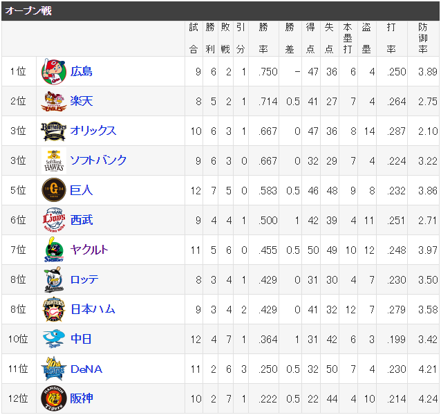 【朗報】パ・リーグ、全球団がOP戦の得失点差がプラス