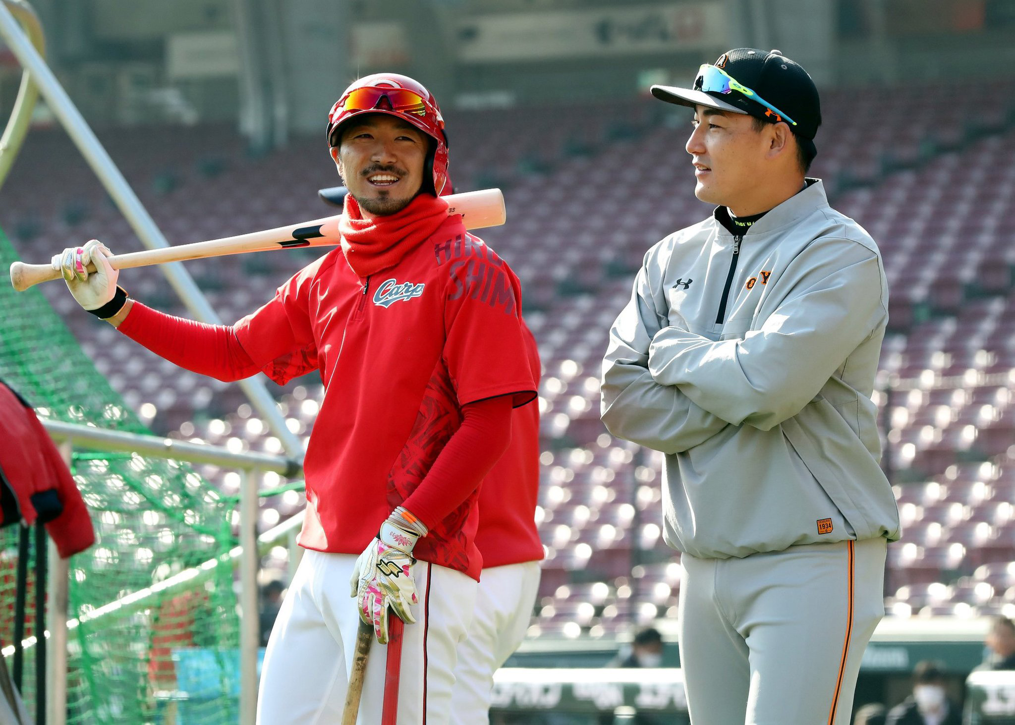 巨人の丸と談笑する菊池。ユニホームは違えども「#キクマル」。 pic.twitter.com/VdpZNhIgfp