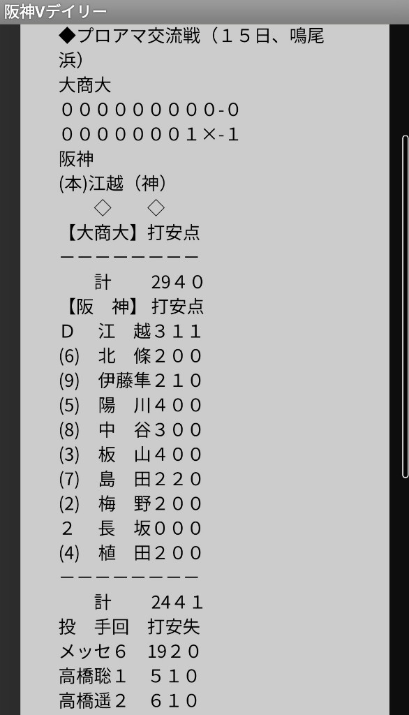 阪神vs大商大 先発メッセ 1軍メンバーがズラリ! 結果は…