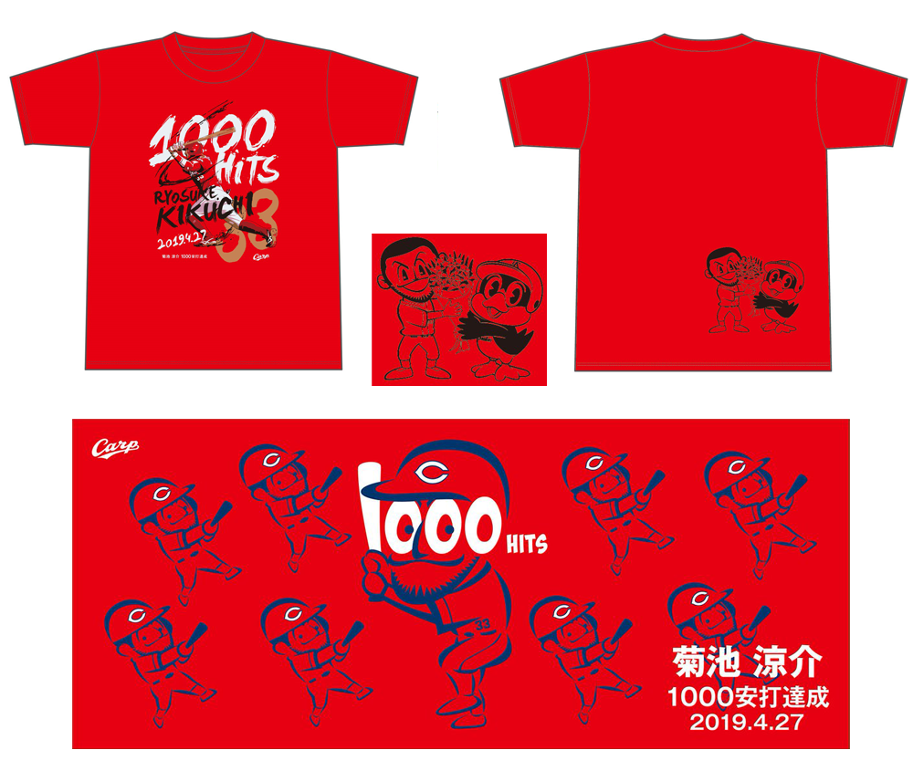■菊池涼介1000安打記念Tシャツ・菊池涼介1000安打記念フェイスタオル