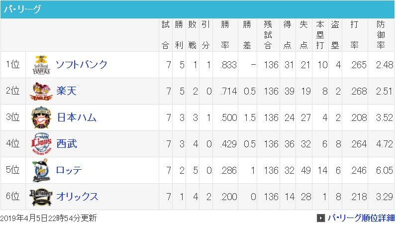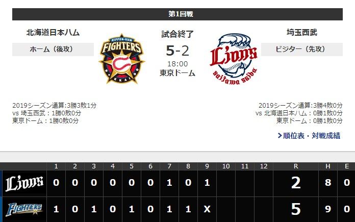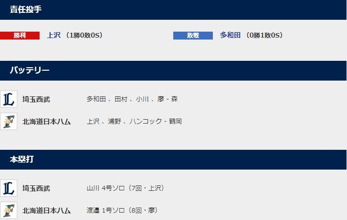 2019.4/5-試合結果【西武×日本ハム】(東京ドーム)は2-5で西武が負け・・・先発、多和田が6回3失点。。7回に山川が4号ソロを打ちその後、満塁のチャンスになるも得点にならず。。。