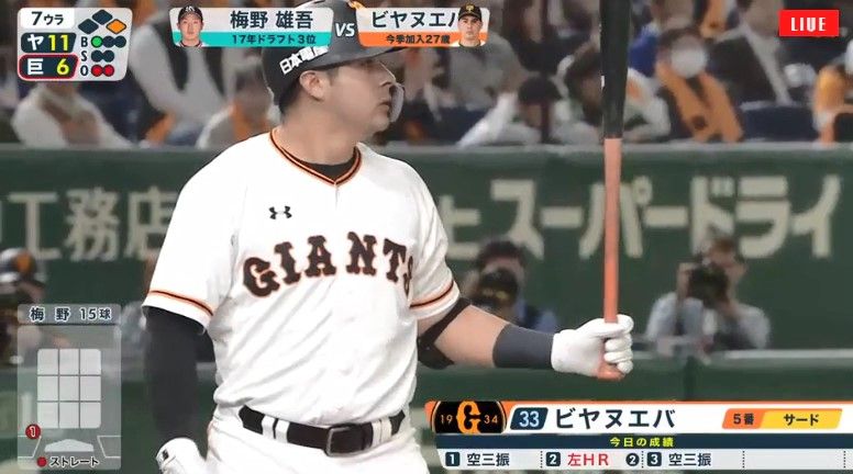 ビヤヌエバ.324 3本 4打点 OPS1.024