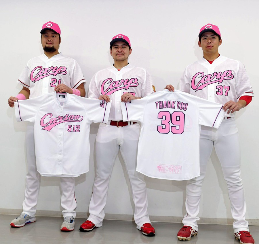 特別ユニホームは、母の優しさをイメージしてCarpのロゴや背番号、帽子がピンクになっていおり、左袖には乳がんの早期発見と早期治療を推進するピンクリボンワッペンが付けられている。