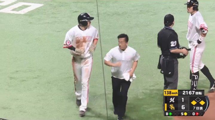 7回裏1死2塁で走者柳田が鮮やかディレード盗塁決め、ドーム沸くも、その後柳田が急遽交代。トレーナーも立ち寄り「」サインが出たため。大量リードの中にも一抹の不安。状況がわかり次第お伝えします #exhawks #sbhawks #radiko #rkbhawks #柳田悠岐
