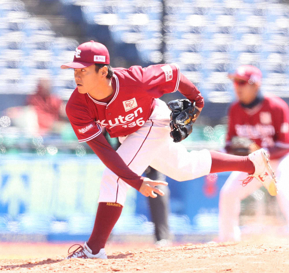 <イースタン ロ・楽>4回から登板した則本佳 (撮影・西川祐介)