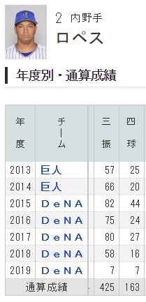 【朗報】DeNAロペス、13試合で昨年の四球数の半分近くを稼ぐ