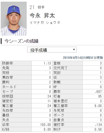 (*^○^*)DeNA先発4本柱の成績をご覧ください