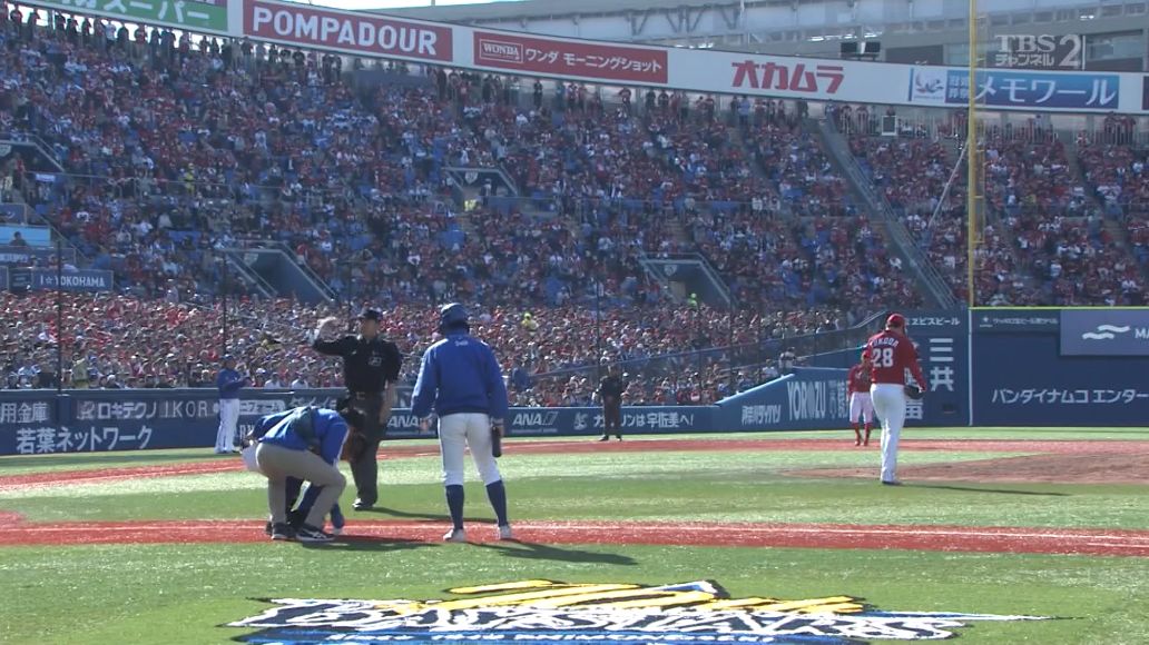 DeNA筒香、肘に死球を受け交代