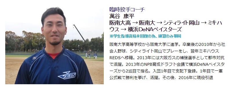 元DeNA萬谷 社会人野球BBCジェッツの臨時コーチになる