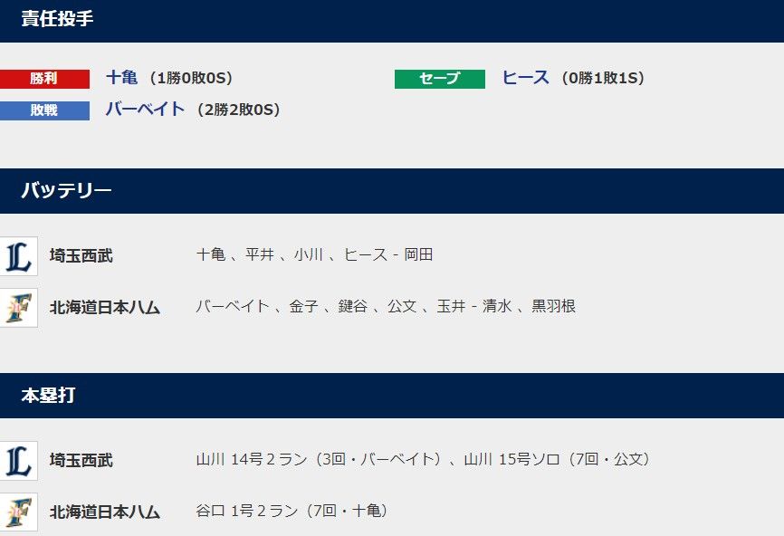 【西武6-3日本ハム】