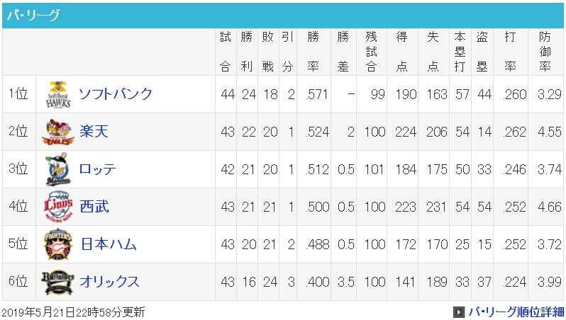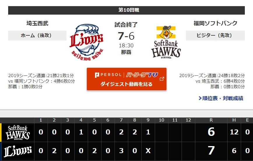2019.5/21-試合結果【西武×ソフトバンク】(那覇)は7-6で西武が勝ち!!山川が地元沖縄で初アーチ!両リーグ最速の20号!!西武、5割復帰!