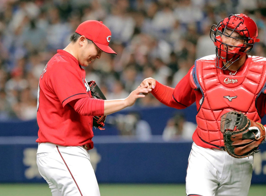 先手を奪われたが、磯村嘉孝捕手の1発で流れを変え、中村恭平投手、菊池保則投手の中継ぎ陣が追加点を与えず。9回に代打松山竜平外野手が執念の同点打。10回はそれまで沈黙していた野手陣が爆発した。総力戦で連勝街道を伸ばして借金完済。緒方孝市監督も「選手の頑張り、そこに尽きる」と諦めずに戦ったナインを手放しでたたえた。【前原淳】