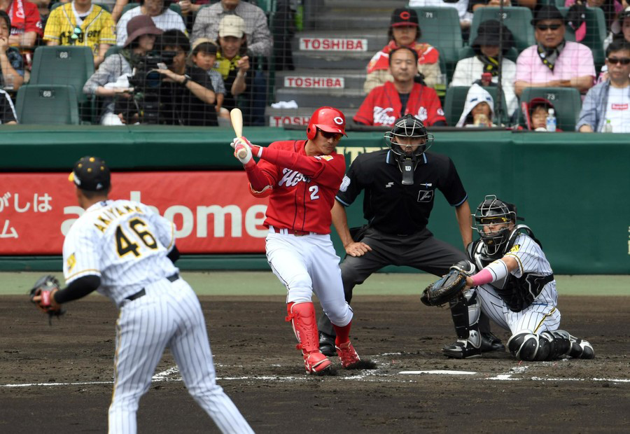 「阪神1-5広島」(19日、甲子園)広島・田中広輔内野手が4日の巨人戦(マツダスタジアム)以来のマルチ安打を記録した。試合後は「出ないより出た方がいい。ここ最近は内容的にも悪くない打席があった。これを続けていきたい」と話した。試合前の練習では連日、迎打撃コーチと打撃フォームの修正に取り組んでいる。同コーチは「前を向かないように言っている。早く前を向くと、バットが出てこない。波打ってしまう。弱いフライ、ゴロになってしまう」と説明。打撃不振が続く中、2安打を復調のきっかけにしたい。