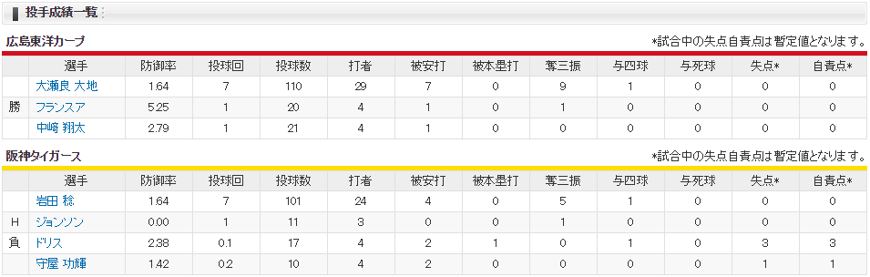 広島バティスタ5号決勝弾で連敗ストップ!大瀬良7回零封!フランスア3勝目!會澤ダメ押しタイムリー!【広島4-0阪神/試合結果】