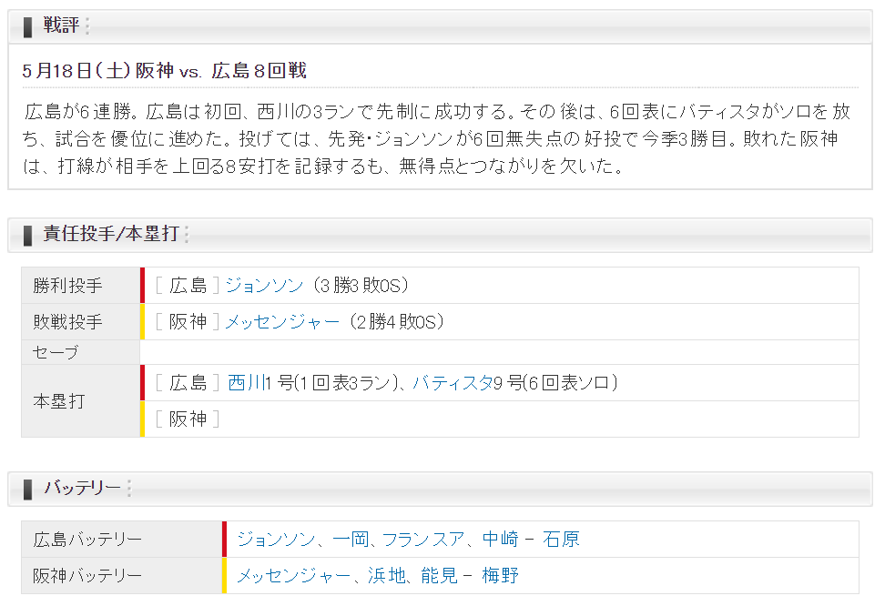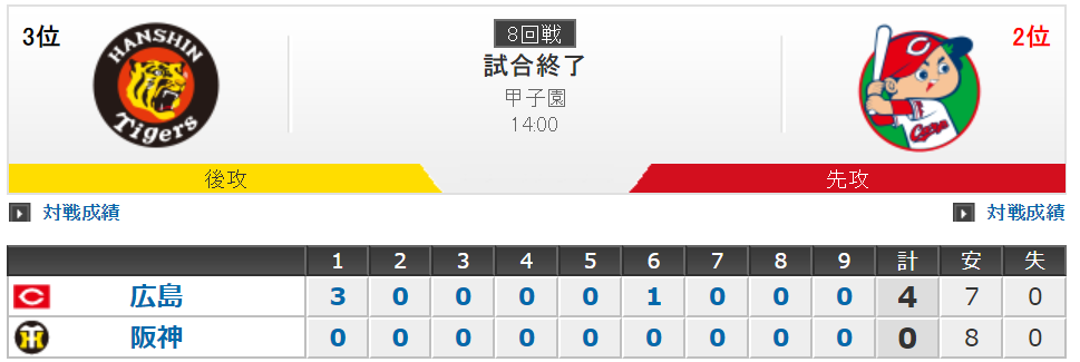 ◇セ・リーグ 広島4―0阪神(2019年5月18日 甲子園)