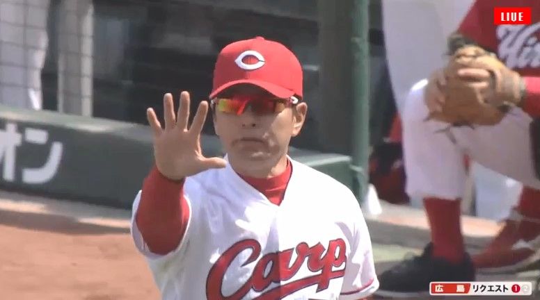 菊池は勢い余ってフェアグラウンドに駆け抜け、中島タッチして判定アウト
