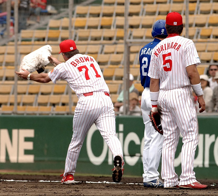 06年から09年まで広島、10年には楽天の監督を務めたマーティ・ブラウンは、5年間で12回の退場処分を受けている。これは監督として史上最多だ。中でも、初めて退場処分を受けた06年5月7日対中日戦(広島市民)での行動はもはや伝説と言ってもいいだろう。