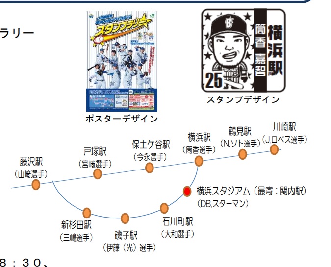 JR横浜駅、JR関内駅をはじめ、10箇所にDeNAの選手のスタンプが設置されている。それら全てのスタンプを集めると、抽選で、試合の観戦チケットやサイン入りグッズなどが当たるという内容になっている。