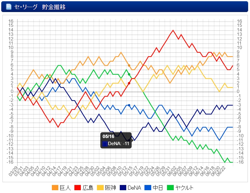 交流戦あんなに好調やったのに案外中日引き離せてないのな