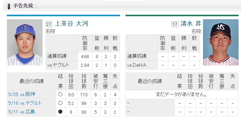 今日のヤクルトvsDeNA 上茶谷と清水のドラ1対決!