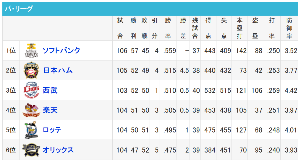 1位2位が8ゲーム差ぐらいだったのが1位から6位までが8ゲームまで圧縮