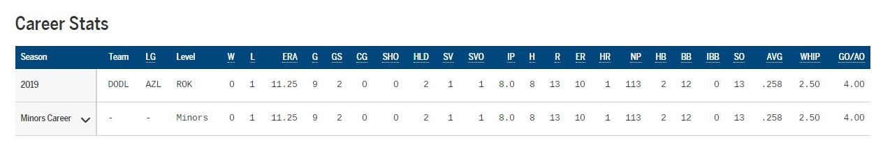 元DeNA北方(ドジャース)のマイナーリーグ成績