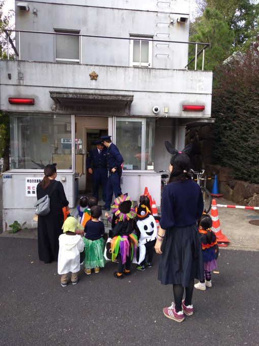 【画像】ハロウィンキッズ、仮装して交番を襲撃