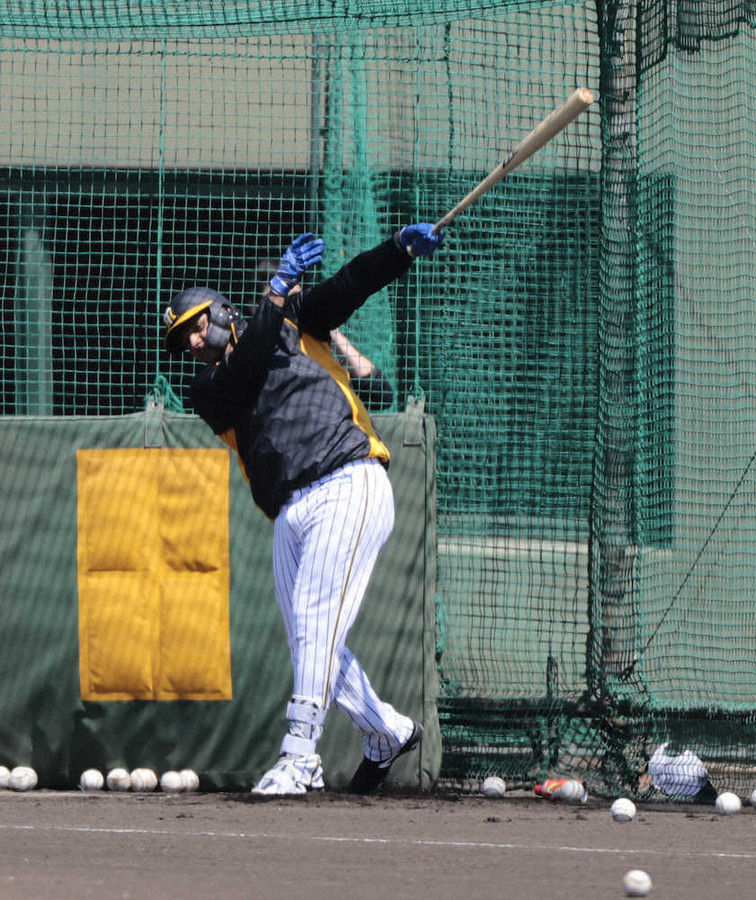 兵庫県西宮市の鳴尾浜球場で3月16日以来、1カ月ぶりに屋外フリー打撃を再開した。