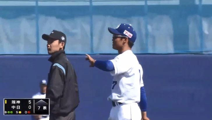 中日根尾が負傷交代 2軍戦守備で走者と接触