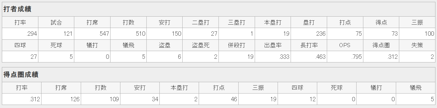.173(283-49) 10本 34打点 128三振 OPS.574