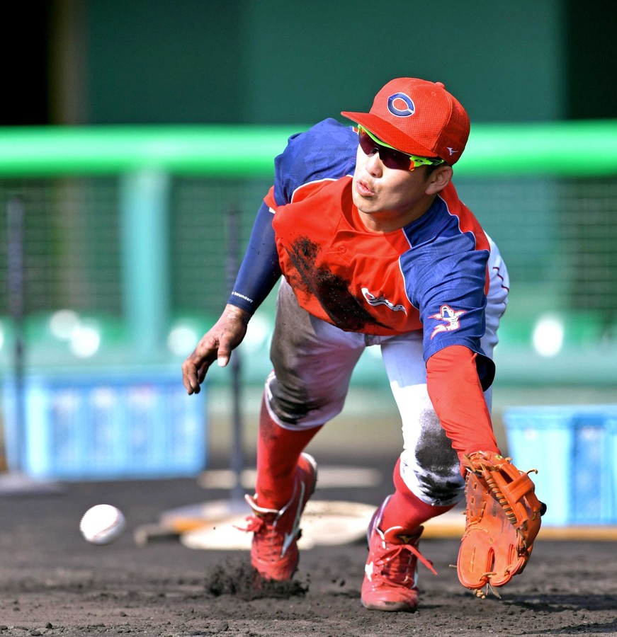 成長著しい若鯉を、チームの武器として生かしたい。そのための一つとしての備えの一手が全体練習前のグラウンドで披露された。小園は早出特守で三塁のポジションに就き、ゴロを何度もさばいて動作を確認した。