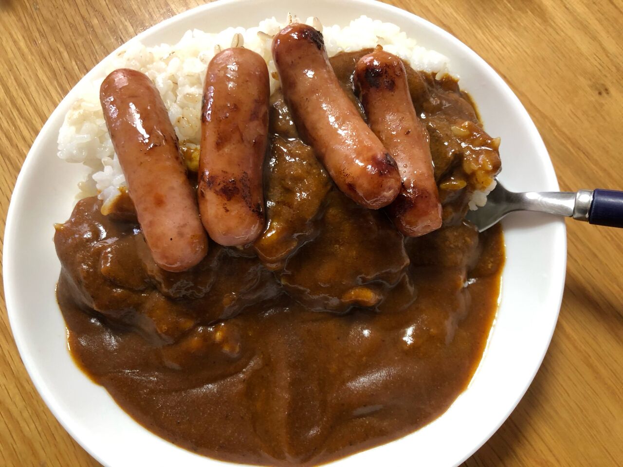 画像はビーフカレー(280円)+トッピングウインナー(100円)で計380円