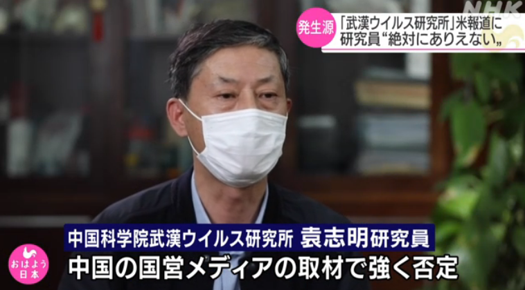 新型コロナウイルスの発生源について、アメリカの一部のメディアが中国の武漢にある研究所から広まった可能性があるなどと伝えたことについて、この研究所の研究員が中国の国営メディアに対して「絶対にありえない」と述べ、強く否定しました。