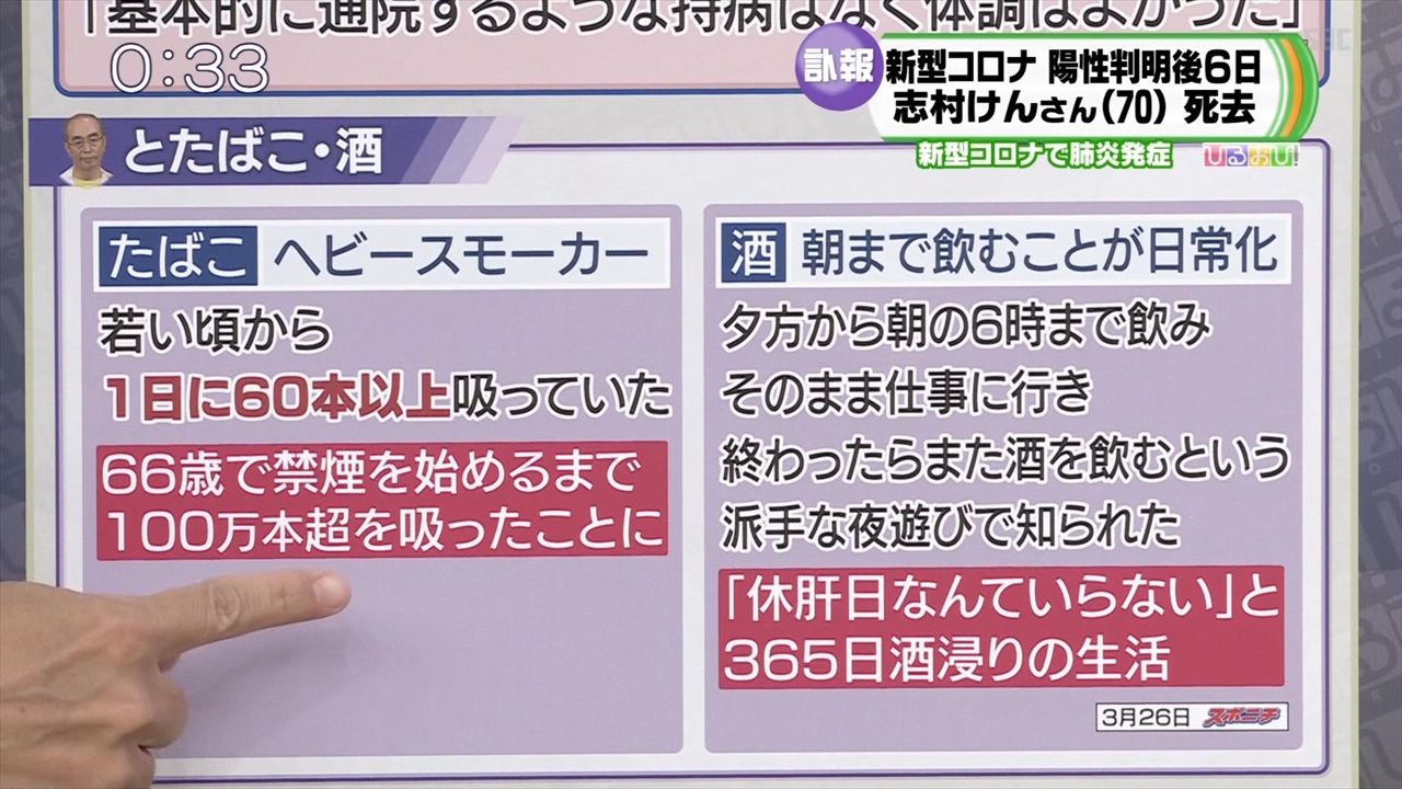 【悲報】志村けんさん、いずれにせよ先は長くなかった…