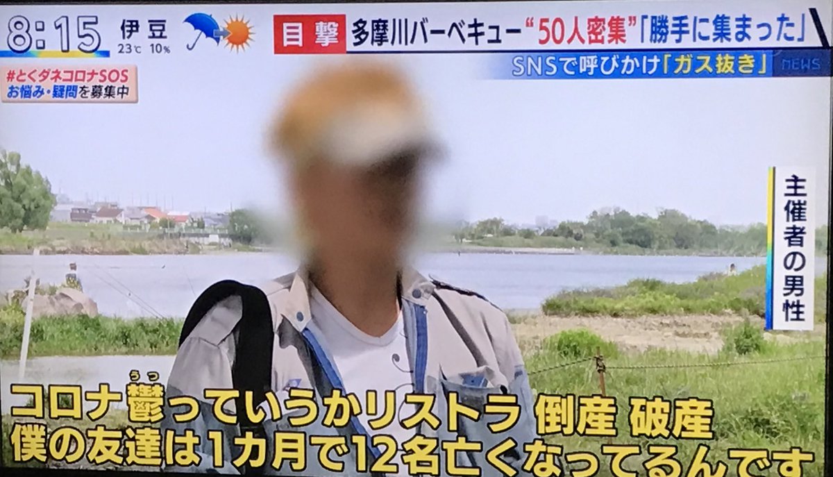 全国に緊急事態宣言が発令される中、大型連休中に神奈川県の多摩川河川敷で約50人が