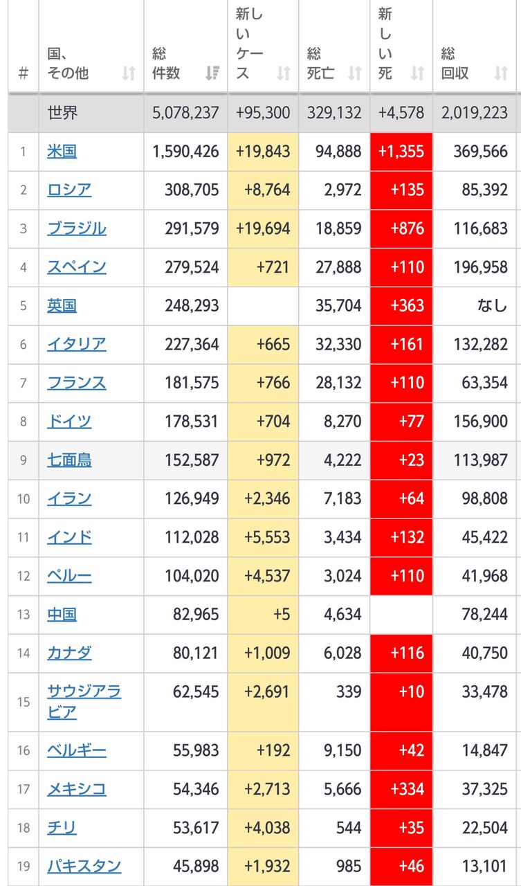 【悲報】アメリカ+19,657、ブラジル+19,694、ロシア+8,764、インド+5,553【新型コロナ】