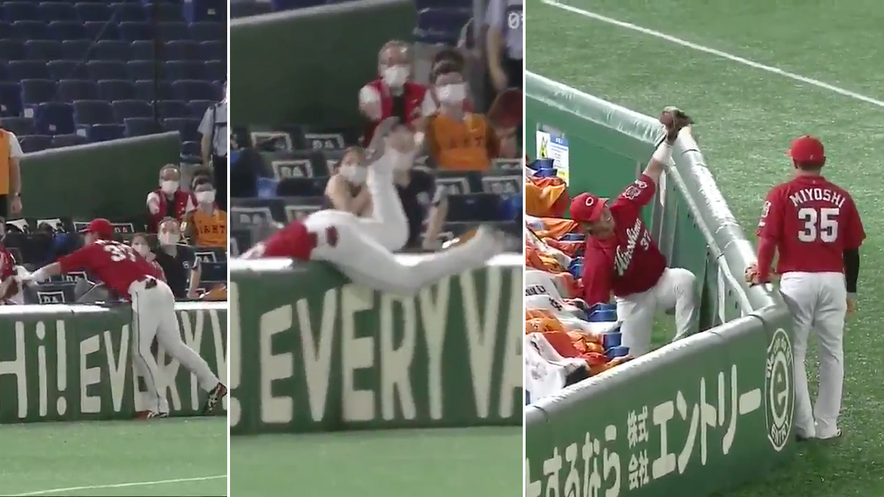 カープ野間、エキサイトシートに飛び込むファインプレー!!